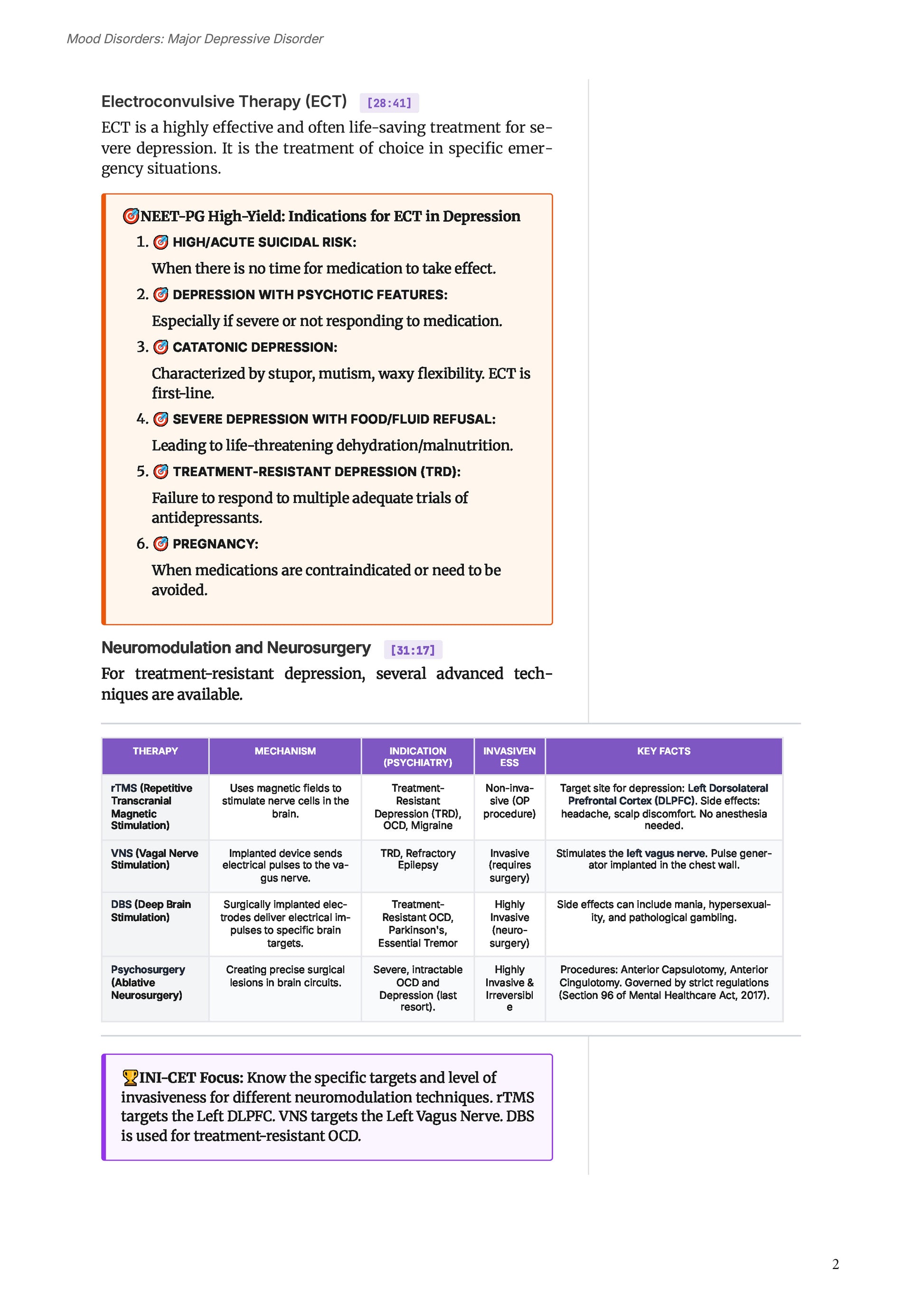 | Recent Advances | - Neuromodulation Techniques (ECT, rTMS) - Genetics in Psychiatry - Biomarkers |